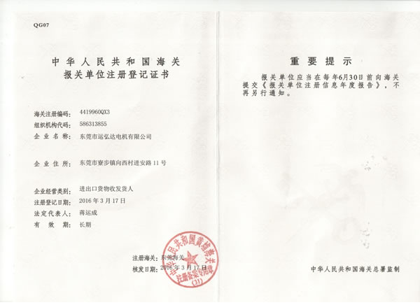 海關(guān)登記證書(shū)